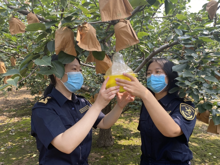 圖為石家莊海關關員對出口果園進行注冊審核。 通訊員高鳳超攝